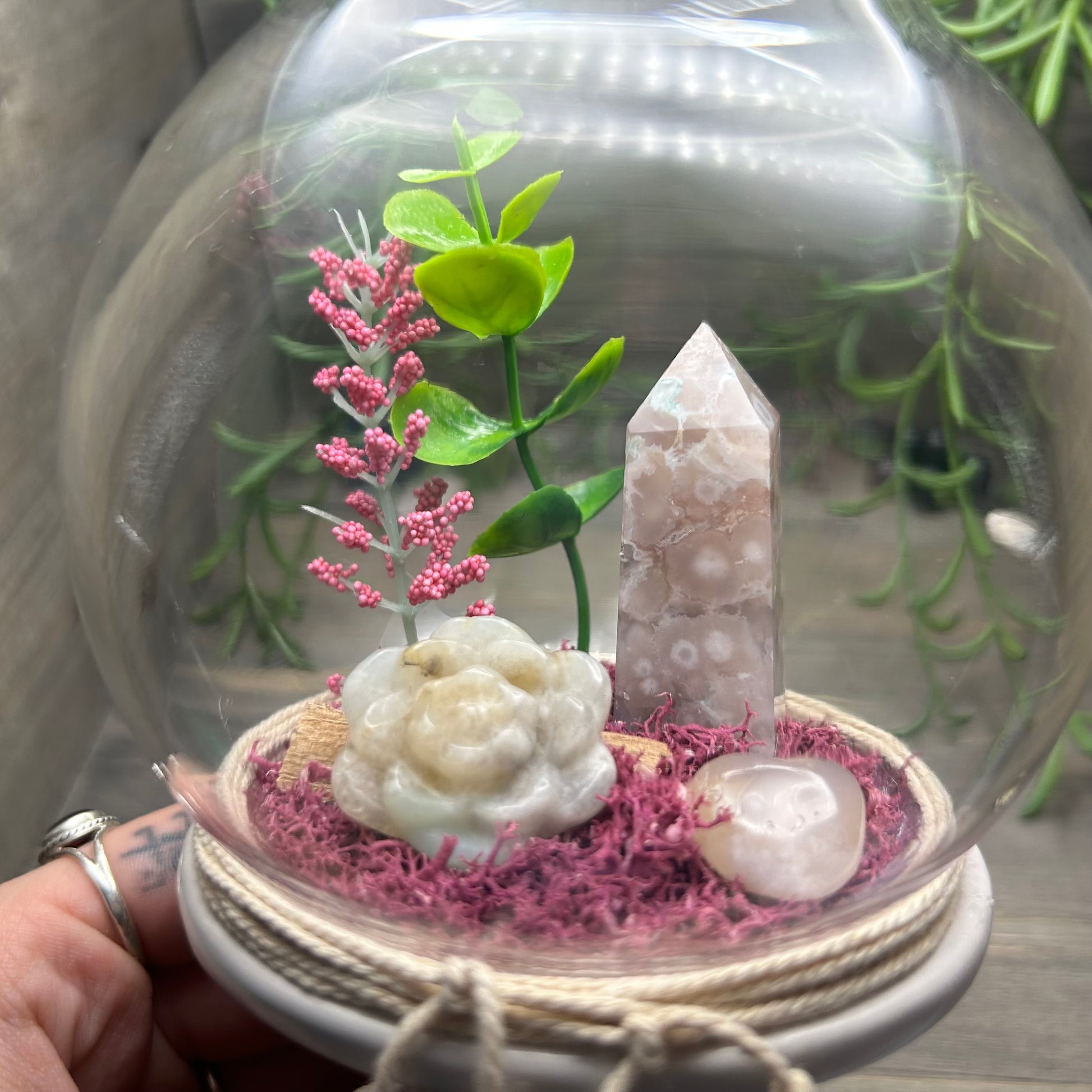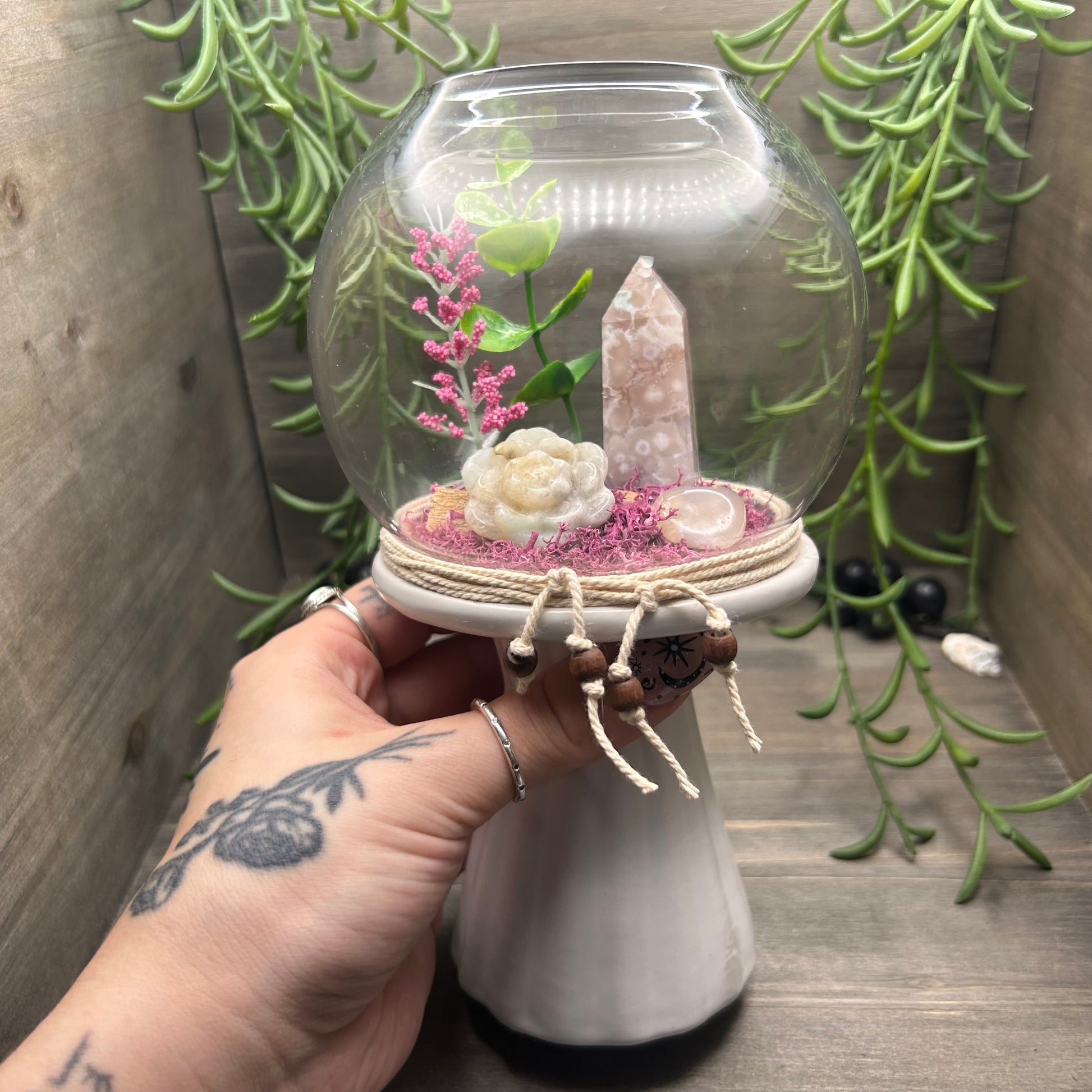pink flower agate terrarium