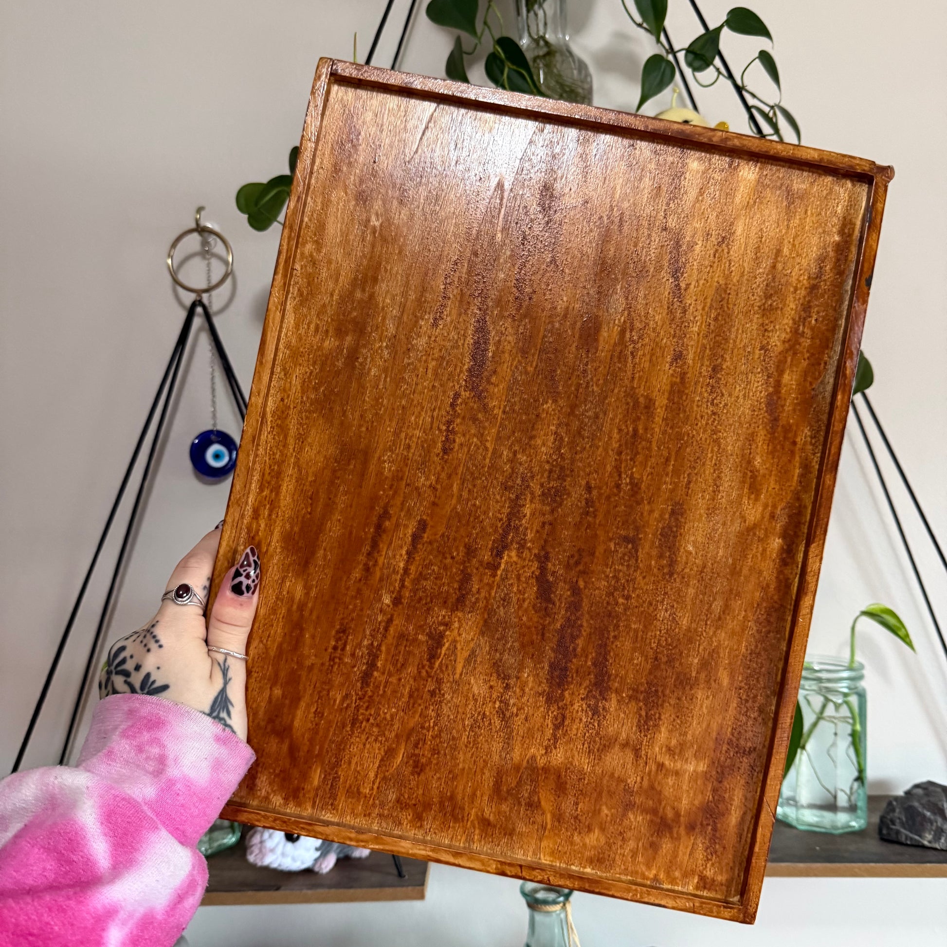 hand stained, hand painted & resin coated moon tarot card tray.